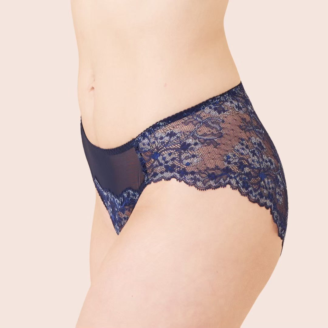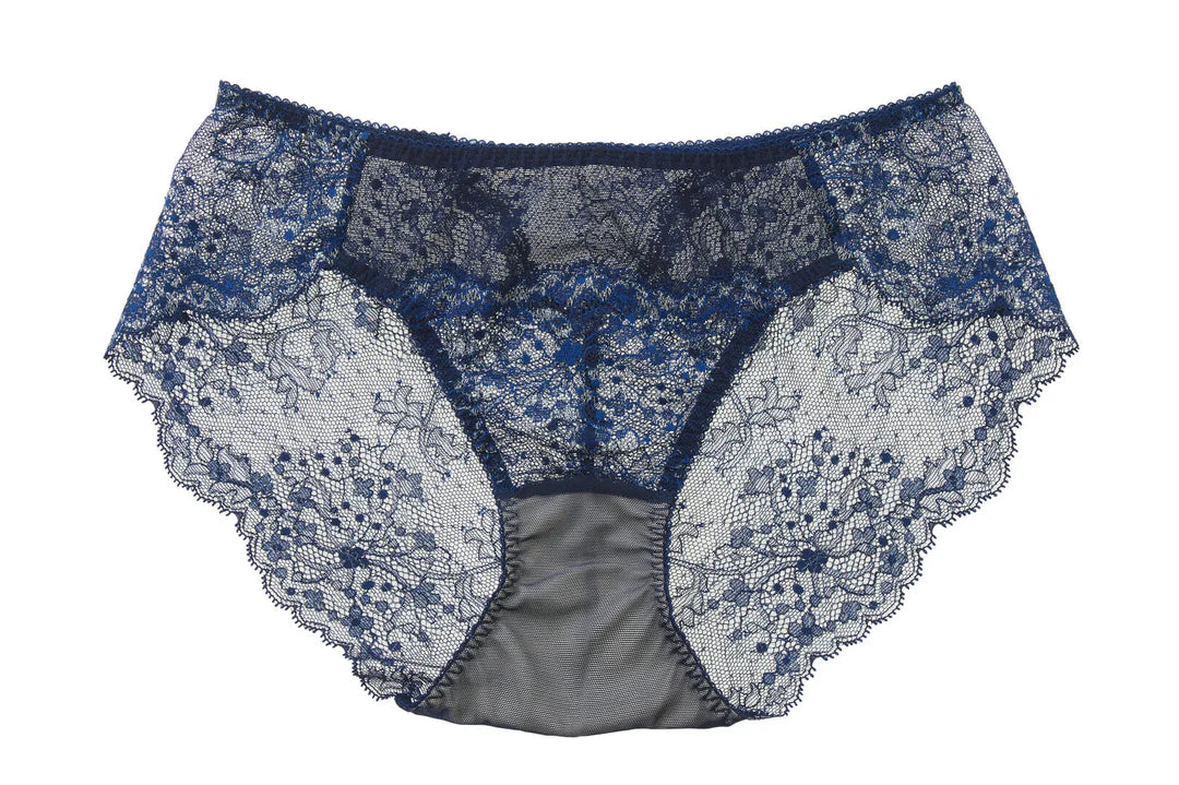 ▼レースの女王・リバーレースを贅沢に使った、透け感の美しい華やかなショーツ。