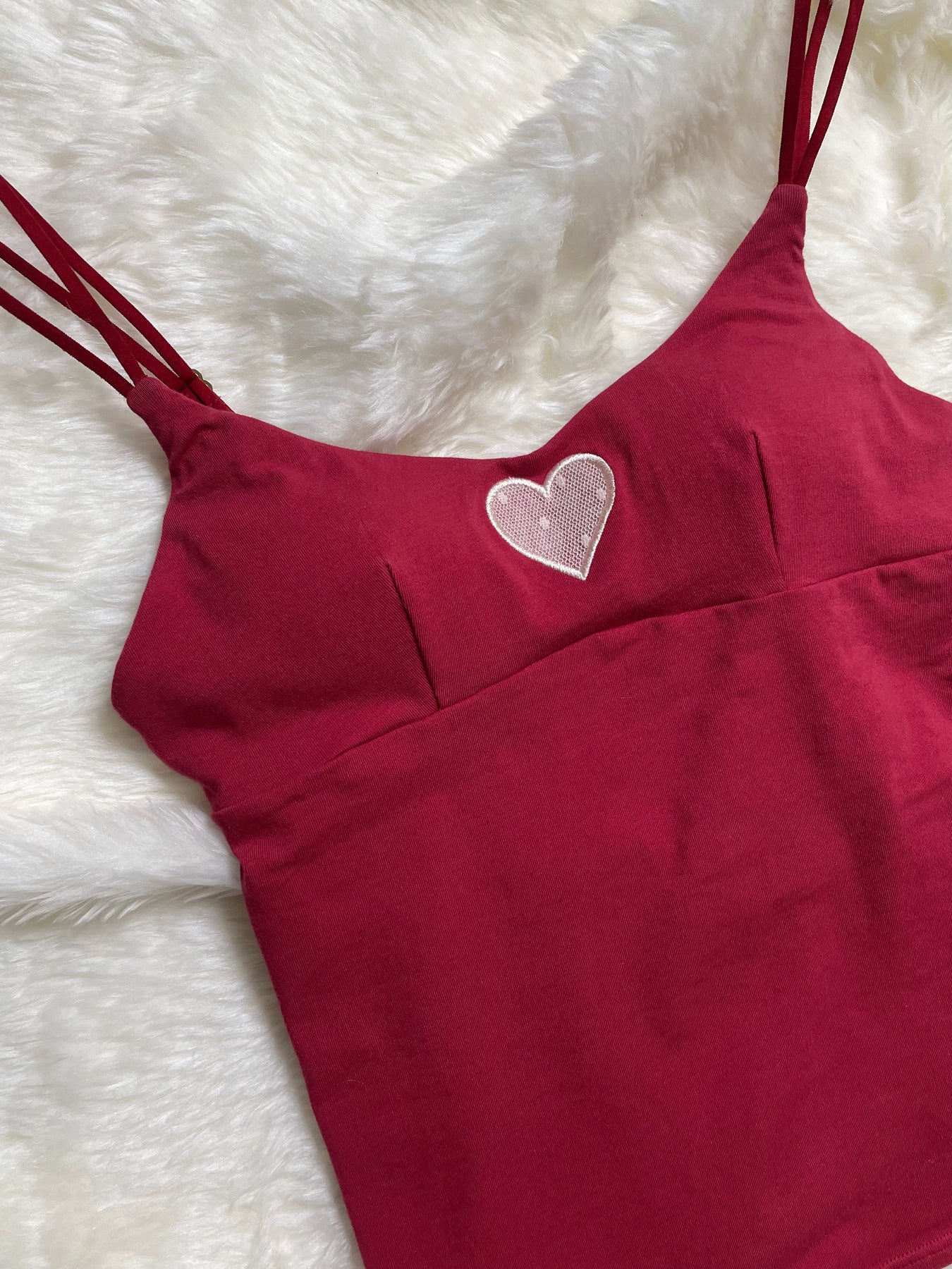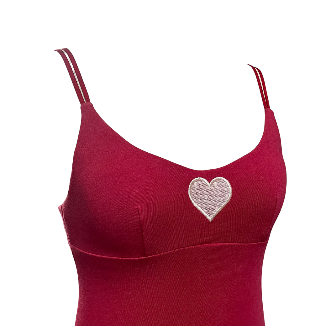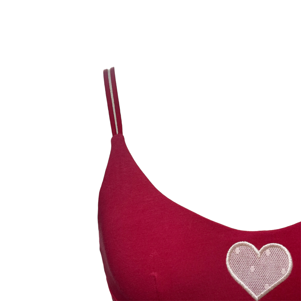 チェリーピンク:コットン生地はくすみ系レッド、ハート部分は淡いピンク色