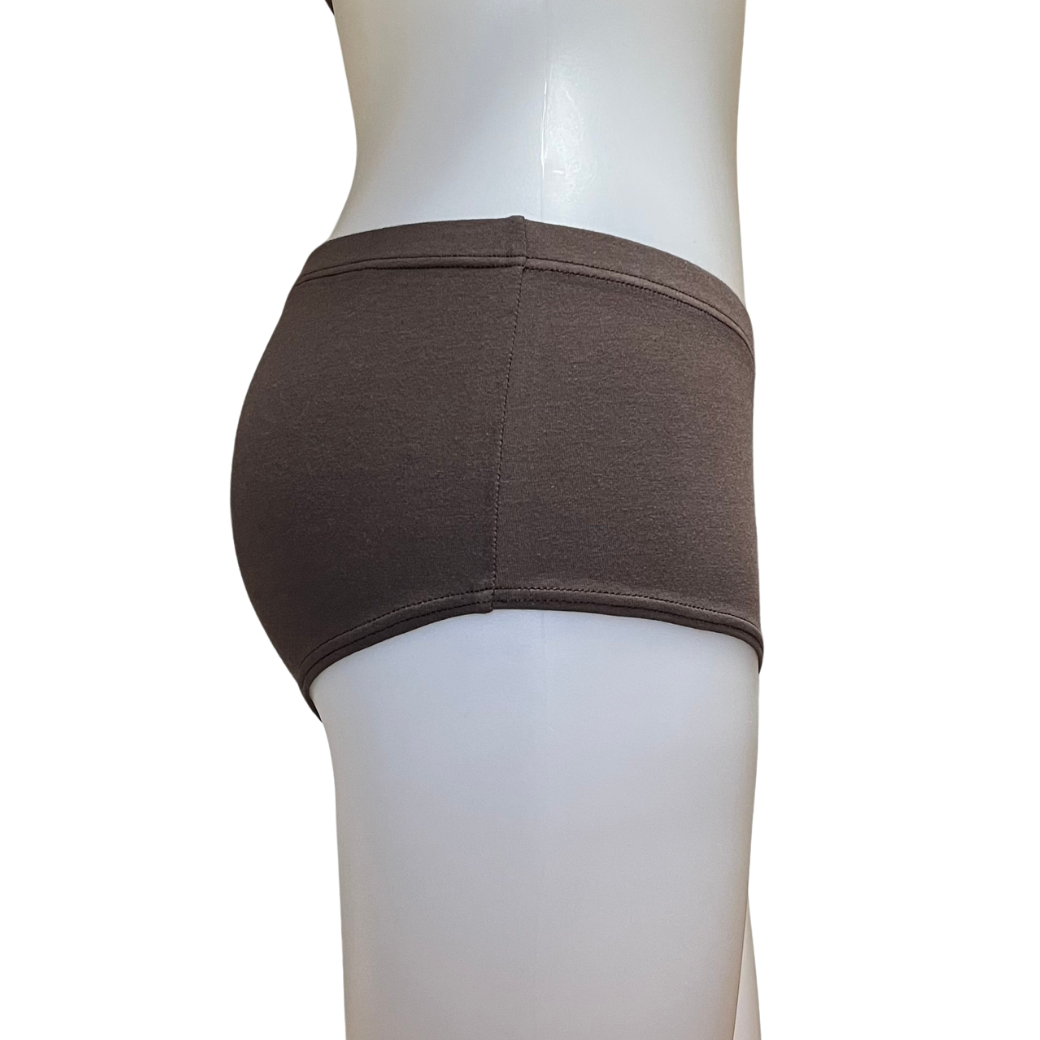 ボーイズレッグ(足ぐりが水平に浅くカットされたデザイン)で、足の付け根のラインまでの長さです。