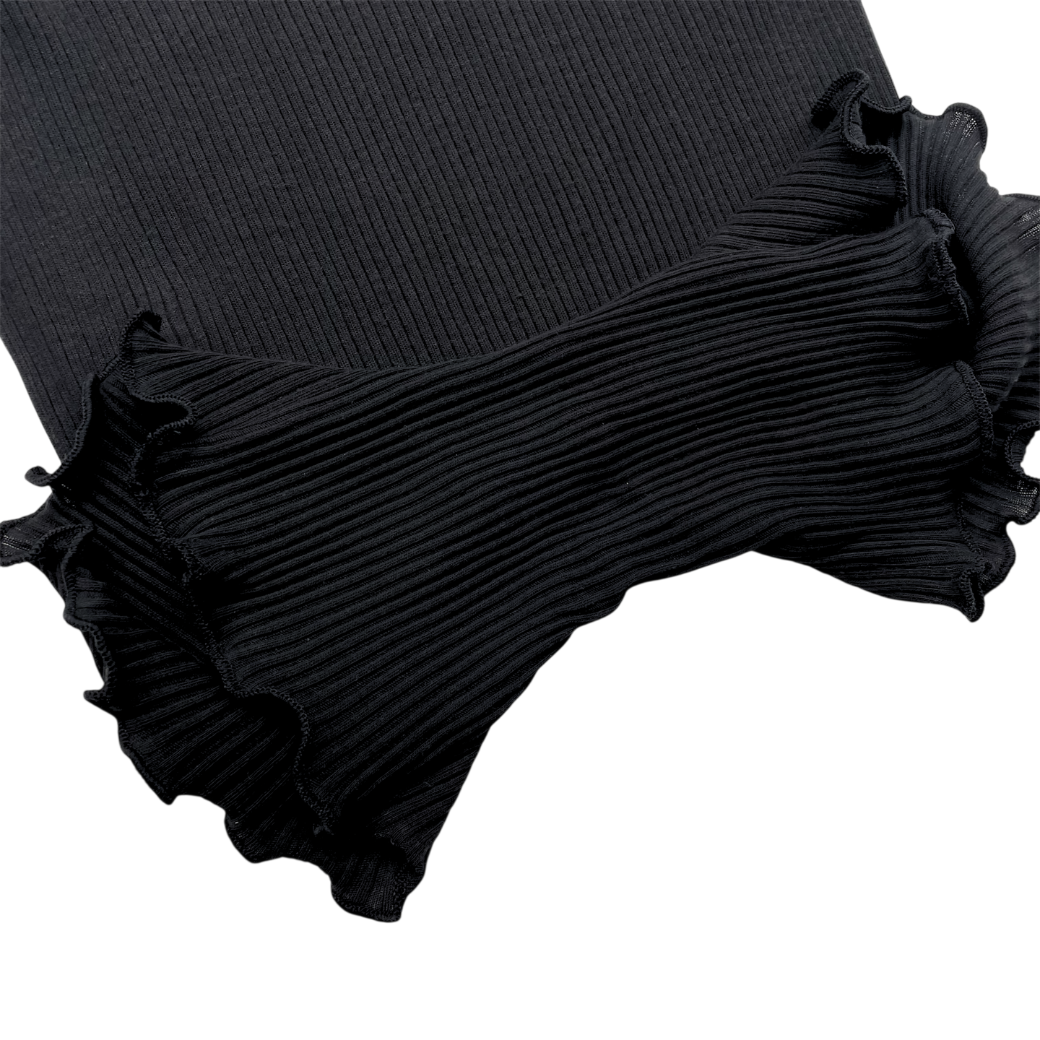 裾のフリルがかわいいデザインですが、とても柔らかな素材なため、座っている時なども気になりません。浮腫みやすい方や、デスクワークの方にもおすすめです。