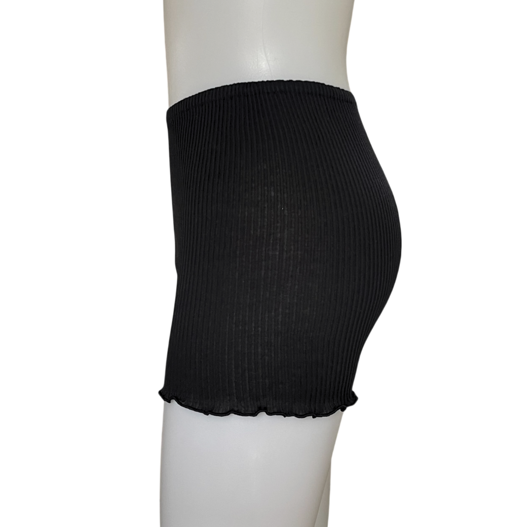 リブ素材でショーツ同様に締め付けがないのに優しくフィットし、夏は汗を吸い取ってくれるし冬は優しく腰を温めてくれる一年中活躍しそうなパンツです。
