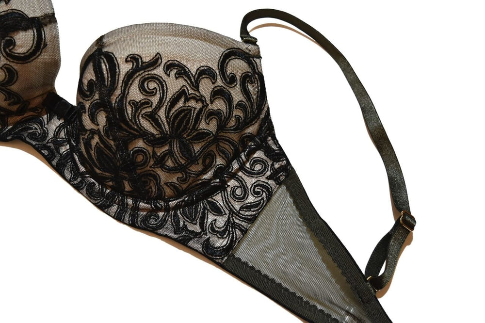 匿名      どちらにしようか迷っている内にノンパテッドが売り切れてしまいこちらを購入しました。とても素敵なカーキとブラックの取り合わせで、特にタンガと合わせての着用を気に入っています。サイズ感の問題なのか、他の4分の3カップに比べると少しアンダーの肌あたりが硬い?ように感じました。