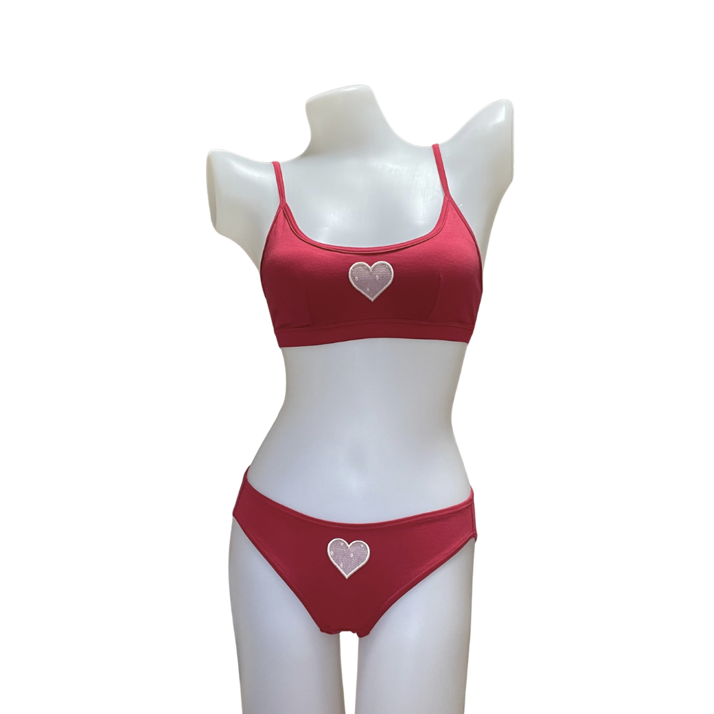 愛を祝福する日バレンタイン。あなたの胸に存在する愛がキュッと刺激されるような愛らしいデザインです。身に纏うと、自分の中の"愛しい天使"が癒される、そんなお守りのようなランジェリーをイメージしました。