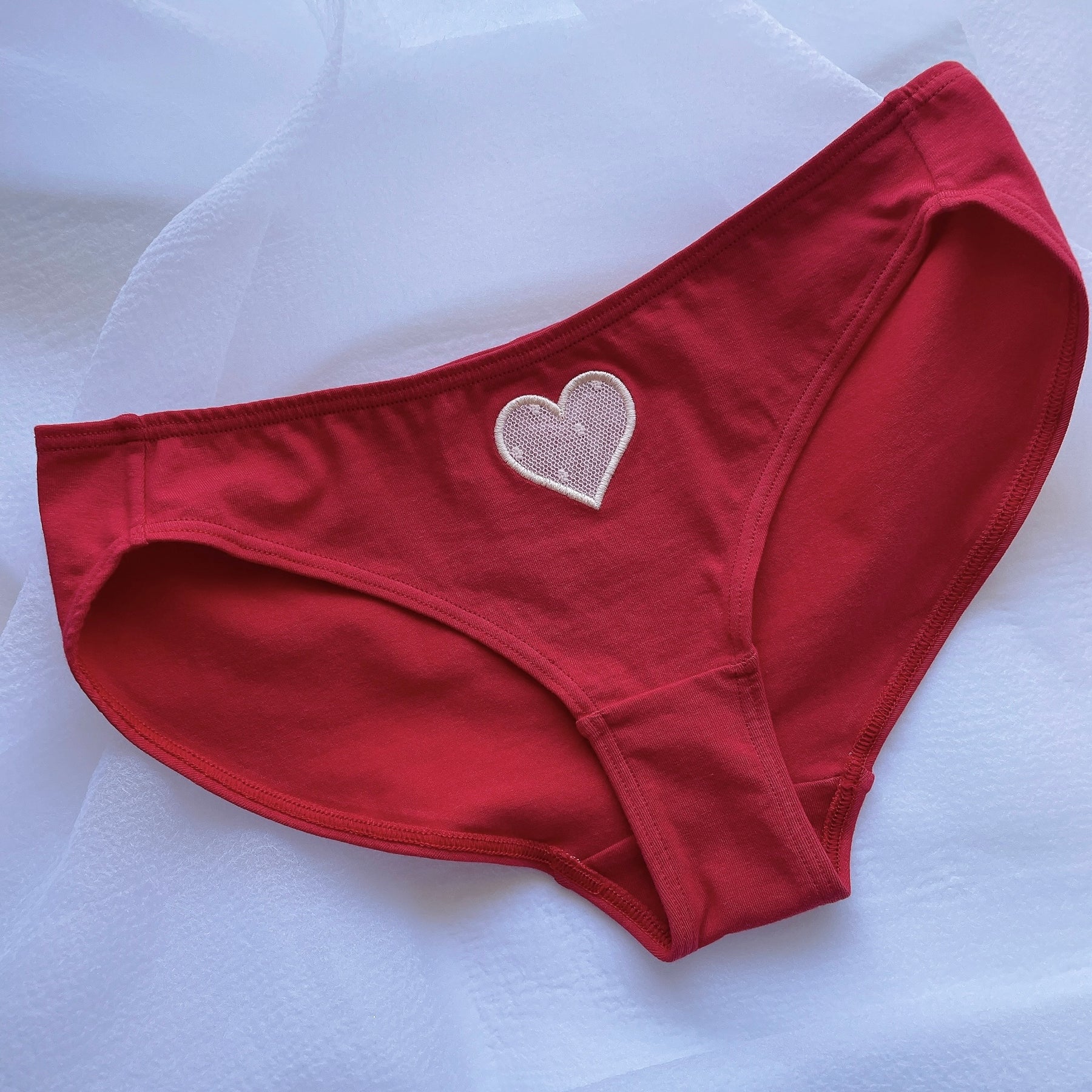 チェリーピンク:コットン生地はチェリーレッド、ハート部分は淡いピンク色